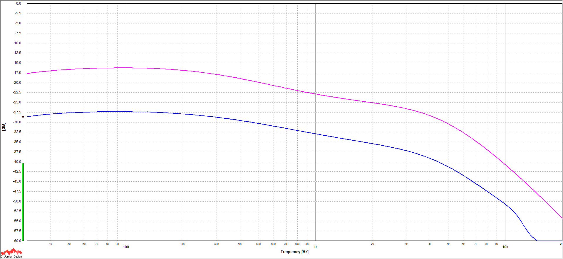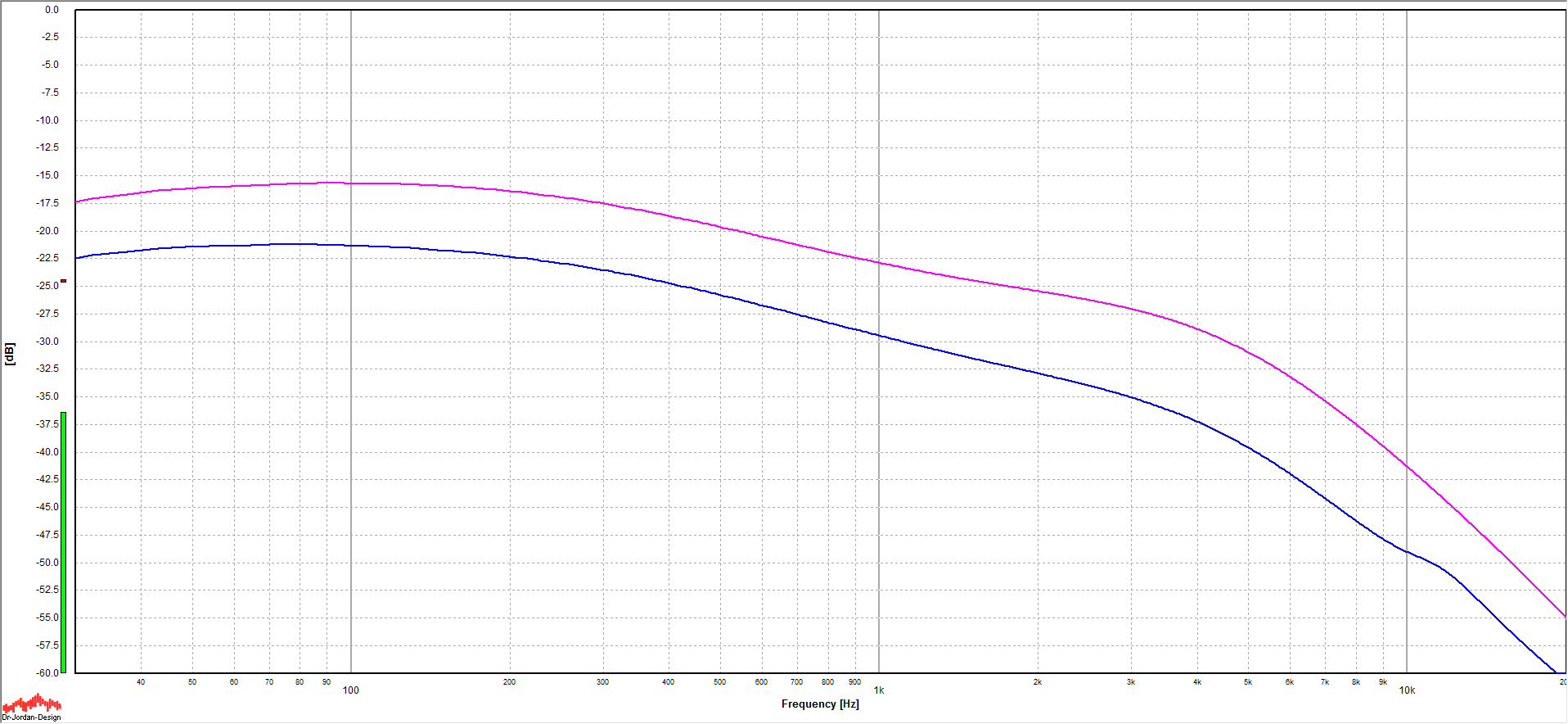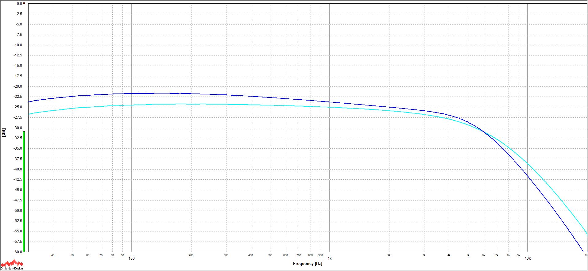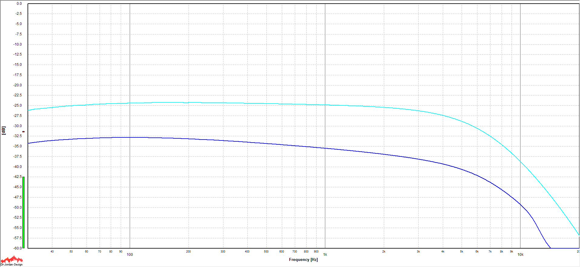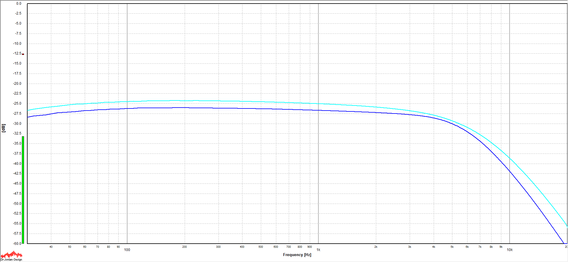The blue line is the current pickup - other color is a Fender Vintage Early 70s pickup for reference.